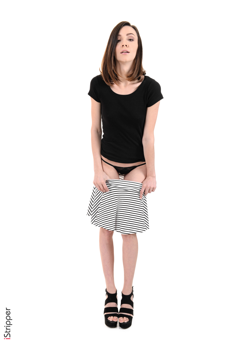 During the striptease scene "Soft Touch", a lovely stripper, Adel Morel, seductively shows off her figure in a black shirt, striped skirt and platform heels. She is pulling up the striped skirt to give you a steamy view of her lingerie which leaves very little to the imagination.
