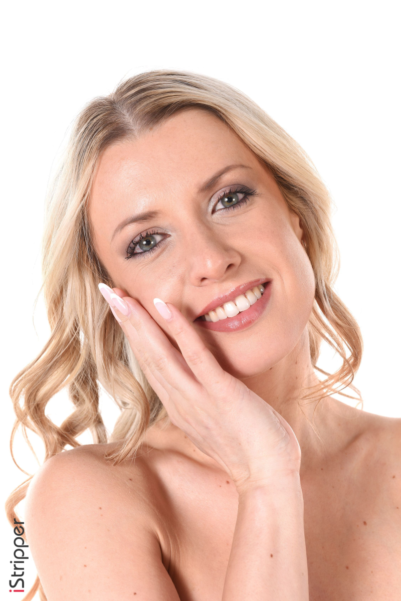 The pictures are from the striptease scene called "Pretty Little Thing", where Adriana Sweetblonde is teasing the audience by showing her lovely body in a very gentle striptease. She starts in a pink shirt and a mini skirt before slowly undressing to reveal a beautiful set of white underwear.