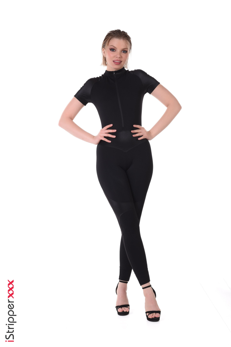 Here is the description of the "Unzip Exposure" scene: We have Ashby Winter rocking a sleek black outfit, teasing with her hands on her hips and turning to flash a peek. The crowd is going wild as she confidently parades around, hinting at the steamy show that is about to come.