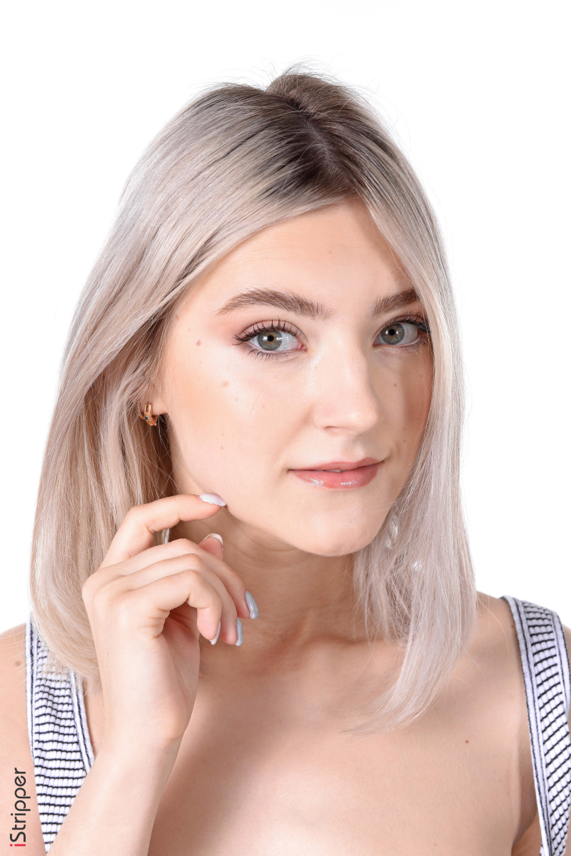 I'm so excited to tell you about the striptease in Overawes. I'm sure you will like it. Eva Elfie starts with a cute denim dress and a grey shirt, and later she is only with beautiful lingerie. She looks so excited and pretty, you can see her body very well because she is removing piece by piece of clothing during the striptease.