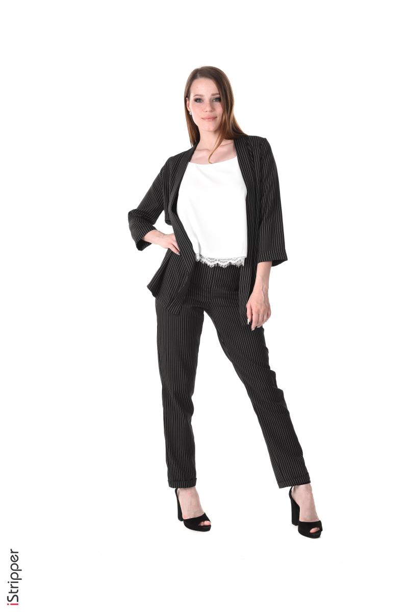 Little Candy is absolutely irresistible in the striptease scene "Business Trip", she starts off in a smart business suit, giving off a professional vibe that quickly fades as she begins to undress, revealing a soft white tank top that only hints at the delights to come.
