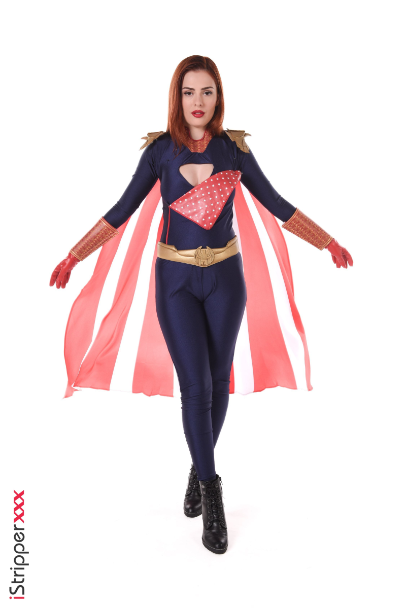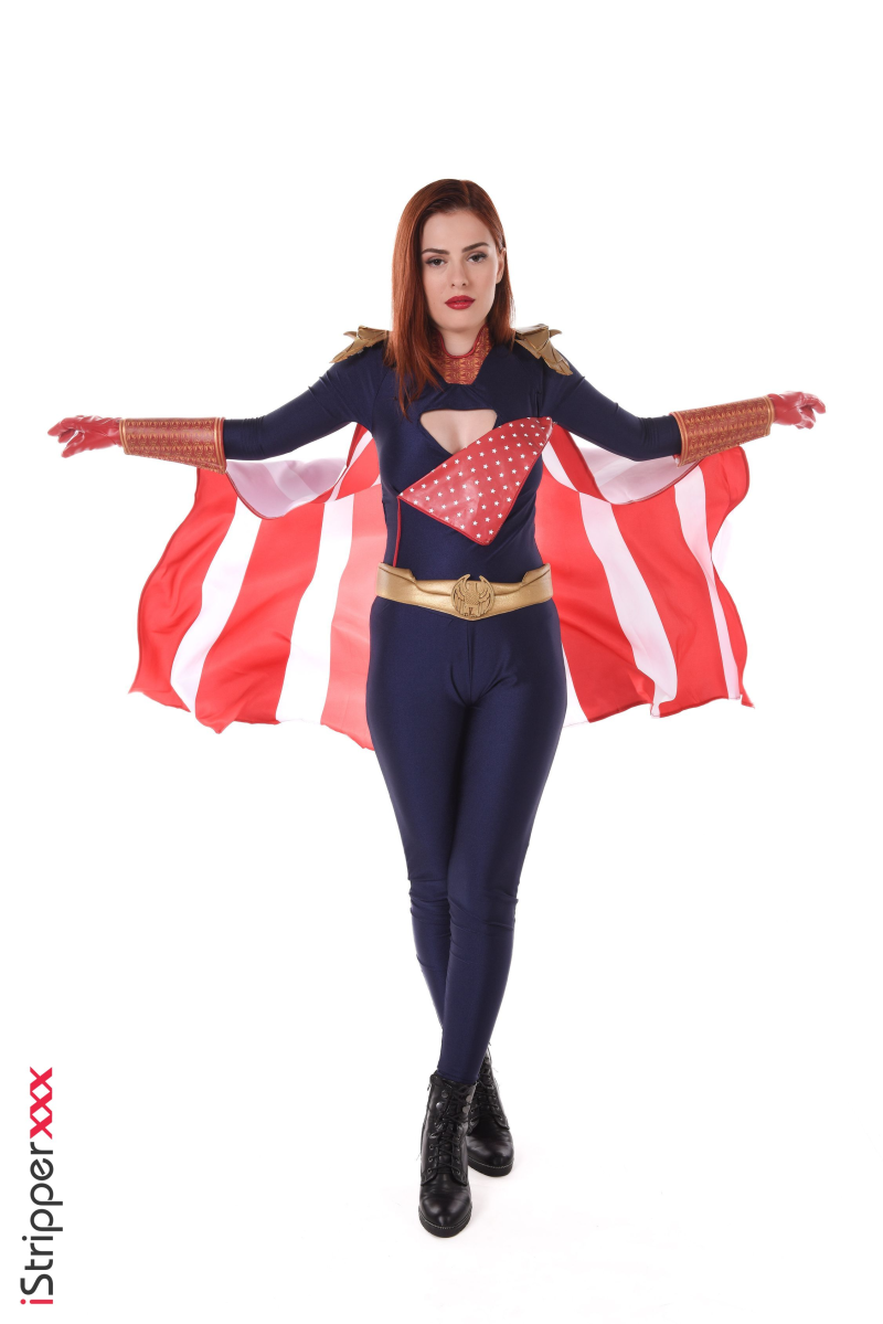 The exciting striptease scene "Moanlander" shows a beautiful and powerful red-haired woman in a superhero costume, stripping and flaunting her body! With a fiery passion, Mina Von D tantalizes the audience with her sensual movements.